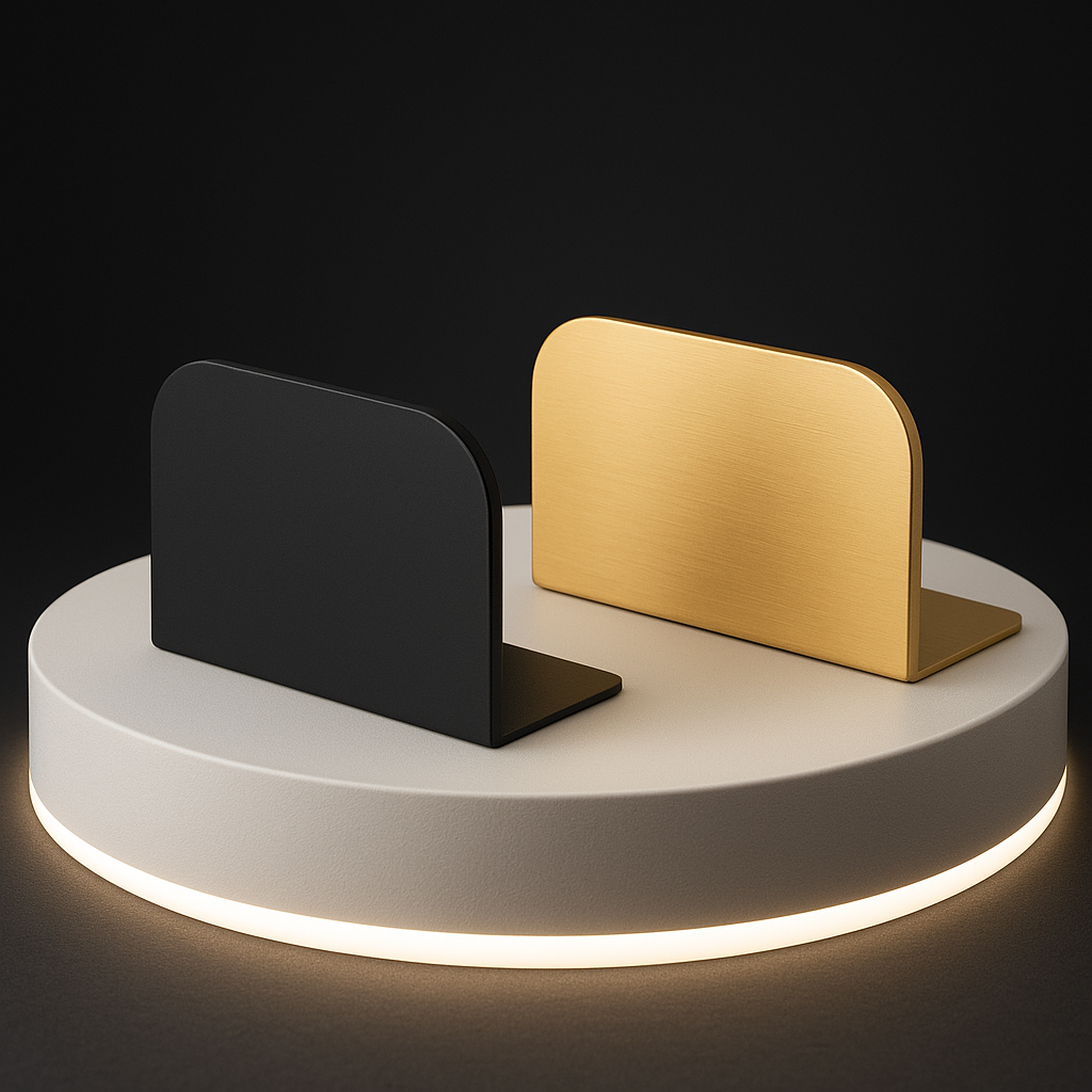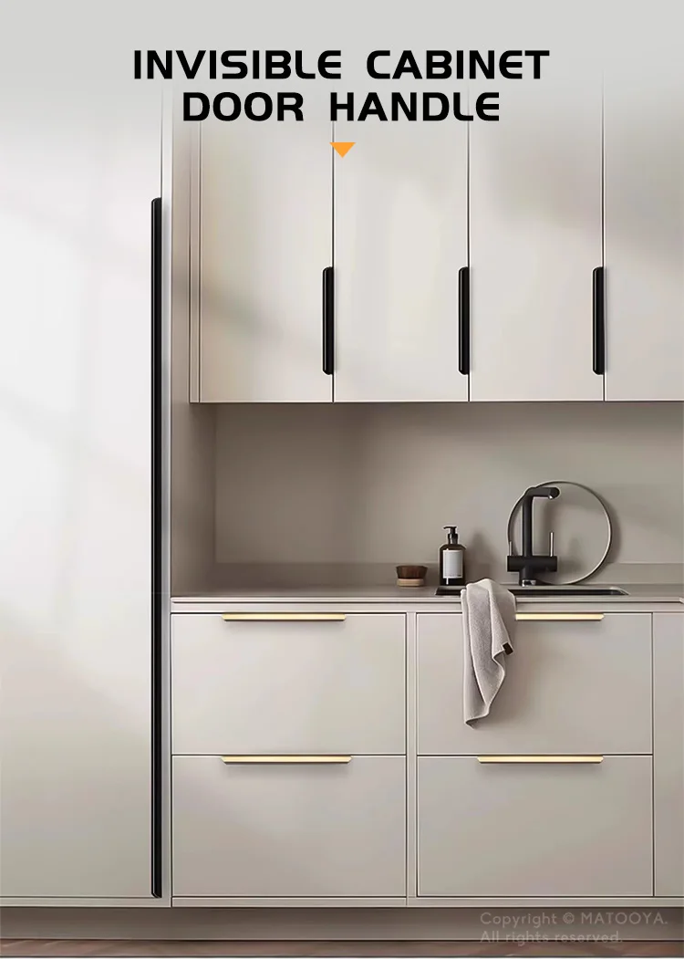 Altın ve siyah renk seçenekleri, alüminyum malzemeli gizli dolap ve çekmece kulpları ile evinize zariflik katın.